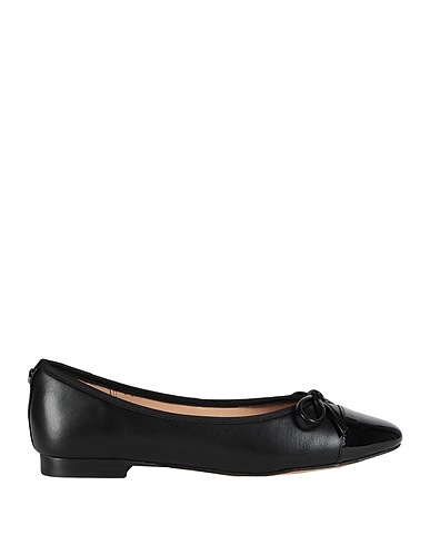 leather, patent-effect, bow-detailed, brand logo, plain colour, fully lined, round toe, flat, rubber sole, contains non-textile parts of animal origin, ballet flats