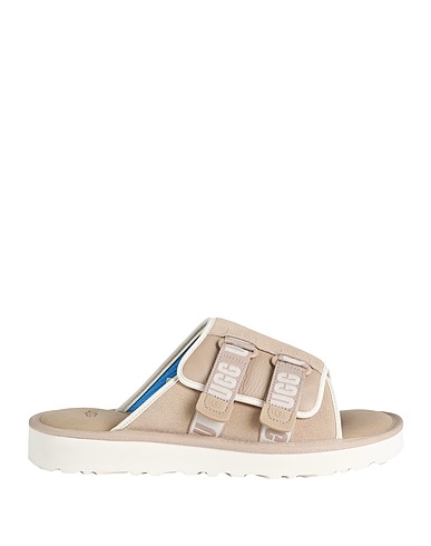 suede, brand logo, two-tone, fully lined, velcro fastening, round toe, flat, rubber sole, contains non-textile parts of animal origin, slide sandals
