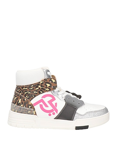 shell, coated fabric, glittered, brand logo, leopard-print, fabric inner, lace-up, round toe, flat, rubber sole, high-top trainers