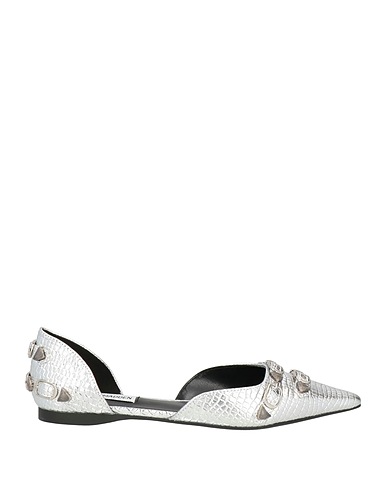 ballet flats, synthetic material, silver-tone, plain colour with appliqués, buckle, fully lined, pointed toe, flat, rubber sole