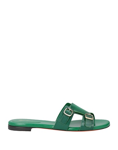 slide sandals, leather, plain colour, no appliqués, leather lining, buckle fastening, round toe, flat, leather sole, contains non-textile parts of animal origin, large sized