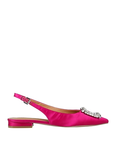 slingback ballet flats, satin, crystals, plain colour with appliqués, leather lining, buckle fastening, pointed toe, flat, rubber sole, contains non-textile parts of animal origin