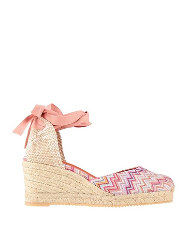 open espadrilles, canvas, woven, metallic, signature print, no appliqués, leather lining, ties at ankle, round toe, wedge heel, rubber sole, contains non-textile parts of animal origin