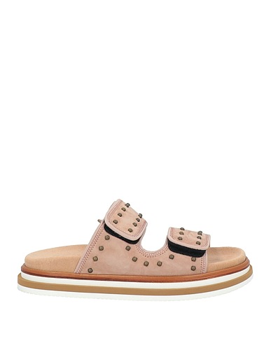 sandals, suede, plain colour with appliqués, studs, leather lining, velcro fastening, round toe, flat, rubber sole, contains non-textile parts of animal origin