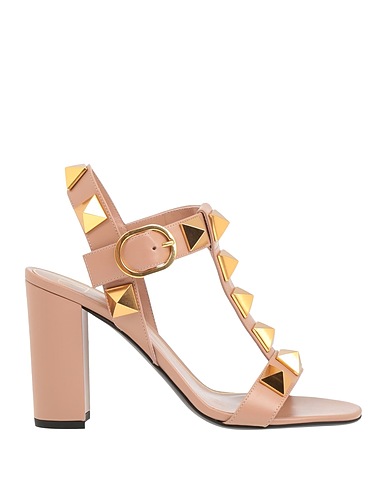 ankle strap sandals, leather, plain colour with appliqués, studs, leather lining, round toe, square heel, leather/rubber sole, contains non-textile parts of animal origin