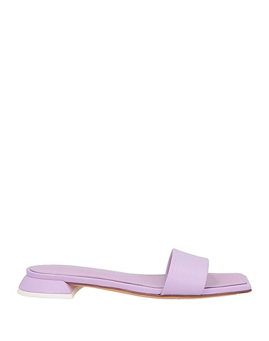 slide sandals, leather, plain colour, no appliqués, leather lining, square toe, flat, leather sole, contains non-textile parts of animal origin