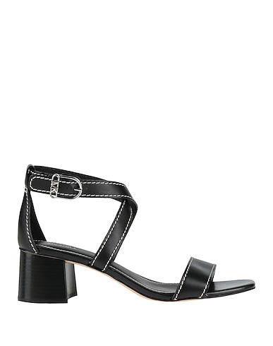 ankle strap sandals, leather, plain colour, brand logo, leather lining, buckle-fastening ankle strap, square toe, sculpted heel, rubber sole, contains non-textile parts of animal origin