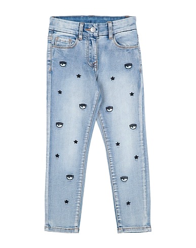 denim, faded, brand logo, embroidered detailing, solid colour with appliqués, light wash, zipper closure, button closing, five pockets, stretch, wash at 30° c, do not dry clean, do not bleach, do not tumble dry, iron at 110° c max, straight-leg model
