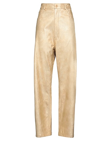 coated fabric, metallic, brand logo, plain colour, low-crotch, regular fit, button fastenings, zip fastening, multipockets, wide-leg trousers