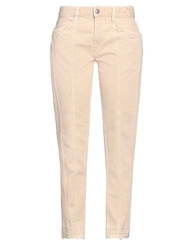 tapered jeans, denim, leather trims, brand logo, plain colour, coloured wash, high waisted, regular fit, button fastenings, zip fastening, multipockets, machine wash or dry clean, do not bleach, do not tumble dry, contains non-textile parts of animal origin