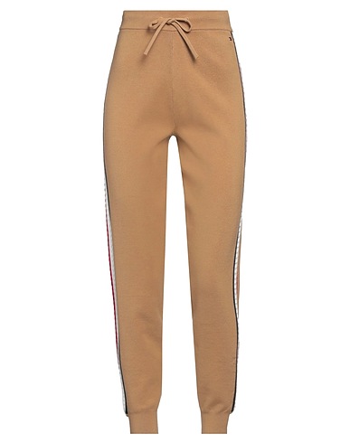 track pants, knitted, lightweight knit, plain colour with appliqués, side seam stripes, high waisted, relaxed fit, drawstring fastening, without pockets, machine wash or dry clean, do not bleach, do not tumble dry