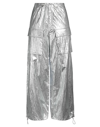 cargo trousers, shell, metallic, plain colour, no appliqués, high waisted, drawstring waist, relaxed fit, zip fastening, button fastenings, multipockets, hand wash or dry clean, do not bleach, do not tumble dry