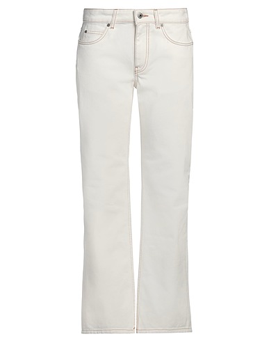 straight-leg jeans, denim, plain colour, leather trims, brand logo, coloured wash, belt loops, regular fit, unlined, zip fastening, 1 button, multipockets, machine wash or dry clean, do not bleach, do not tumble dry, contains non-textile parts of animal origin