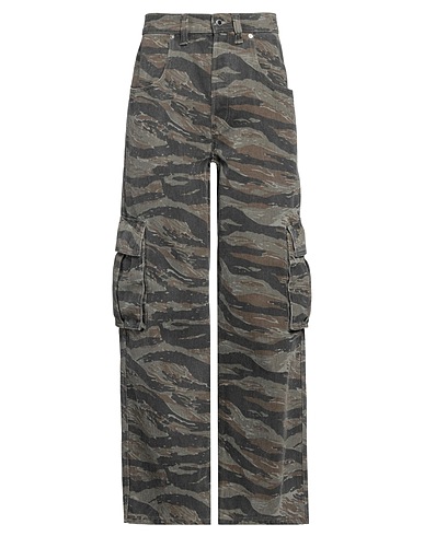 cargo jeans, denim, camouflage-print, brand logo, coloured wash, high waisted, regular fit, button fastenings, multipockets, machine wash or dry clean, do not bleach, tumble dry, this brand runs large