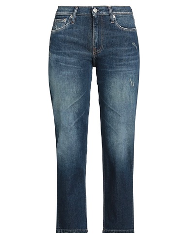 tapered jeans, denim, faded, distressed, plain colour, brand logo, dark wash, mid rise, regular fit, zip fastening, 1 button, multipockets, stretch, machine wash, do not bleach, tumble dry