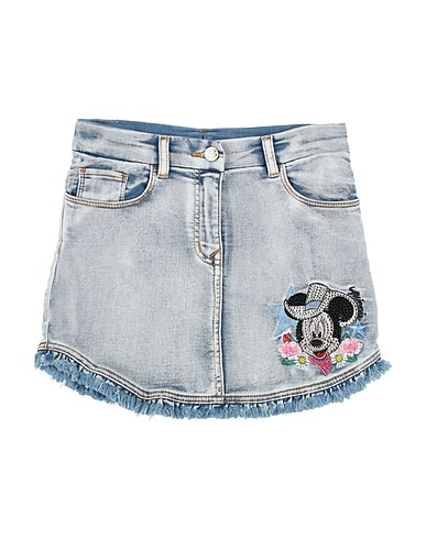denim, faded, two-tone, brand logo, embroidered, light wash, belt loops, unlined, 1 button, zip fastening, fringed hem, multipockets, machine wash or dry clean, do not bleach, do not tumble dry