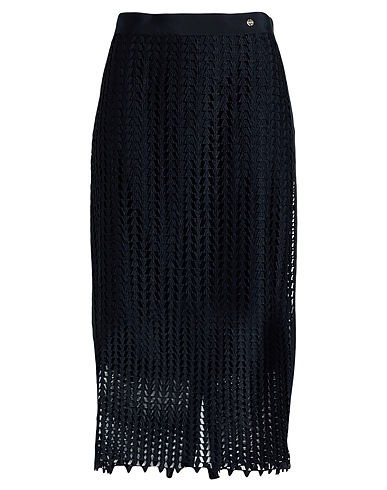 pencil skirt, woven, perforated, plain colour, brand logo, grosgrain trims, partially lined, zip fastening, 1 button, machine wash or dry clean, do not bleach, do not tumble dry