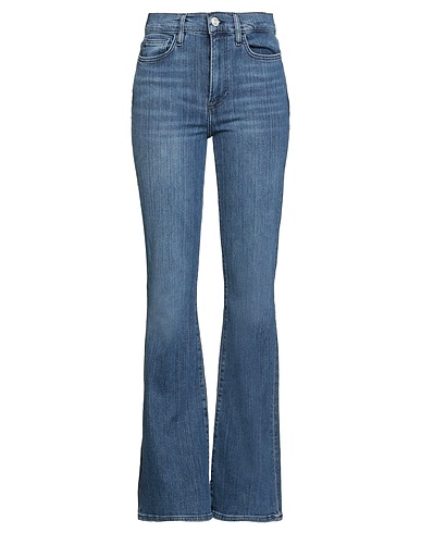 boot-cut jeans, denim, distressed, faded, plain colour, brand logo, studs, medium wash, mid rise, regular fit, 1 button, zip fastening, multipockets, machine wash, do not bleach, do not tumble dry