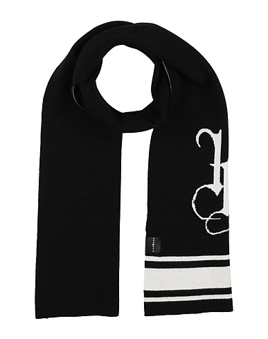 scarf, jacquard-knit, lightweight knit, two-tone, brand logo, hand wash, do not bleach, do not tumble dry, do not iron