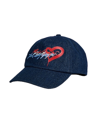 baseball cap, denim, plain colour with print, brand logo, hard visor, adjustable fastening