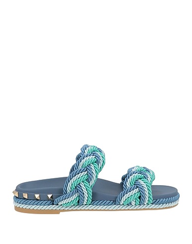sandals, satin, multicolour, studs, leather lining, round toe, flat, rubber sole, contains non-textile parts of animal origin