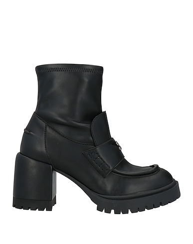 sock ankle boots, leather, plain colour, brand logo, leather lining, elasticated inserts, round toe, square heel, rubber cleated sole, contains non-textile parts of animal origin