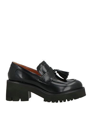 chunky loafers, glossed-leather, plain colour, tassels, leather lining, round toe, square heel, rubber cleated sole, contains non-textile parts of animal origin