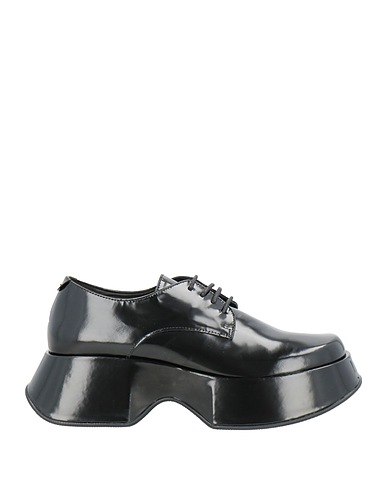 chunky lace-ups, glossed-leather, plain colour, no appliqués, leather lining, round toe, square heel, rubber sole, contains non-textile parts of animal origin