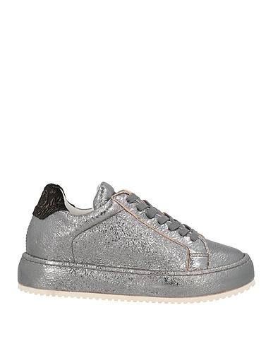 low-top trainers, leather, metallic, plain colour, brand logo, leather lining, lace-up, round toe, rubber cleated sole, contains non-textile parts of animal origin