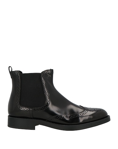 chelsea boots, glossed-leather, plain colour, no appliqués, lined in shearling, elasticated inserts, round toe, flat, rubber cleated sole, contains non-textile parts of animal origin