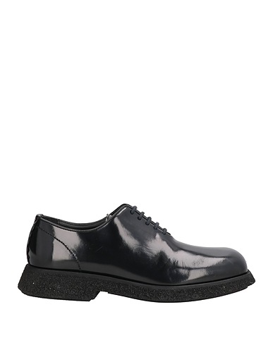 chunky lace-ups, glossed-leather, no appliqués, plain colour, leather lining, square toe, square heel, rubber sole, contains non-textile parts of animal origin