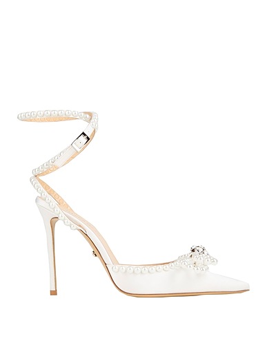 pumps, satin, plain colour with appliqués, beads, crystals, leather lining, buckle-fastening ankle strap, pointed toe, spike heel, leather sole, contains non-textile parts of animal origin