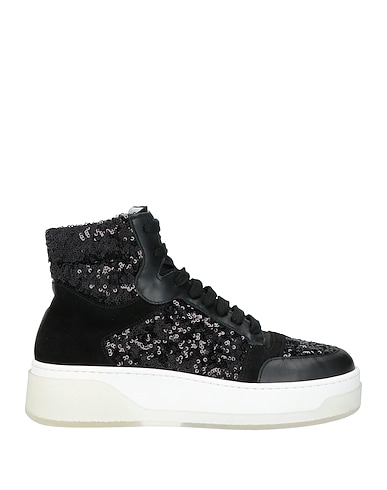 high-top trainers, leather, suede, plain colour with appliqués, sequins, leather lining, lace-up, round toe, rubber cleated sole, contains non-textile parts of animal origin, small sized