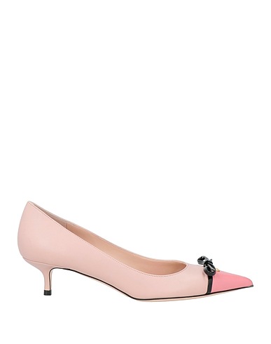 pumps, leather, two-tone, brand logo, bow-detailed, leather lining, pointed toe, kitten heel, covered heel, leather sole, contains non-textile parts of animal origin