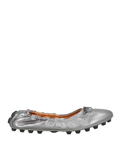 ballet flats, leather, metallic, plain colour with appliqués, bow-detailed, leather lining, elasticated inserts, round toe, flat, pebbled sole, contains non-textile parts of animal origin