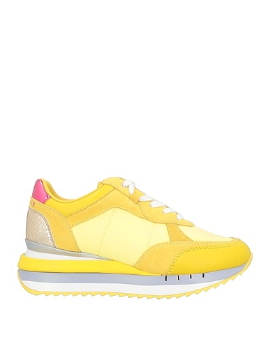 low-top trainers, suede, shell, metallic, two-tone, brand logo, lace-up, round toe, wedge, rubber cleated sole, leather lining, contains non-textile parts of animal origin