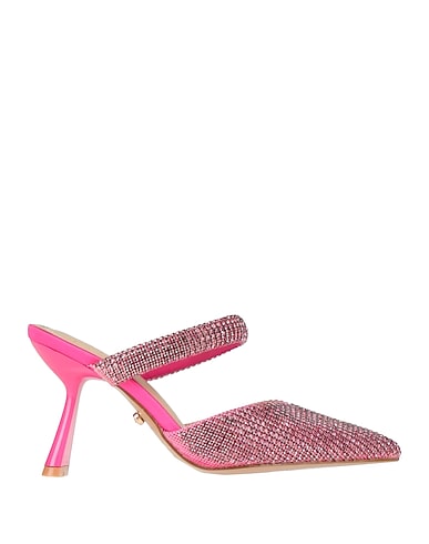mules, mesh fabric, plain colour with appliqués, crystals, lined interior, pointed toe, spool heel, plastic heel, rubber sole