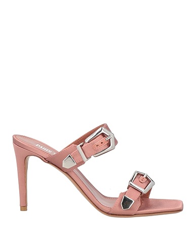 sandals, satin, plain colour, no appliqués, leather lining, buckle fastening, square toe, spike heel, leather sole, contains non-textile parts of animal origin