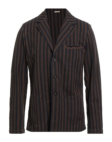 single-breasted blazer, woven, striped, no appliqués, lapel collar, long sleeves, unlined, button fastenings, one chest pocket, patch pockets, dual back vents, dry clean, do not bleach, do not tumble dry
