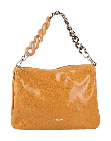 handbag, leather, plain colour, brand logo, zip fastening, fully lined, internal compartments, bag handle, detachable shoulder strap, large size, contains non-textile parts of animal origin