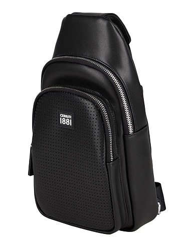 rucksack with zip, leather, perforated, plain colour, brand logo, zip fastening, fully lined, small size, contains non-textile parts of animal origin