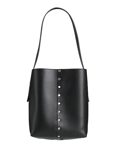 bucket bag, leather, plain colour with appliqués, studs, snap fastenings, detachable interior pouch, bag handle, medium size, contains non-textile parts of animal origin