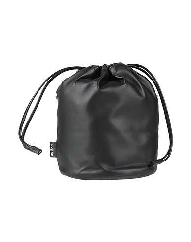 bucket bag, synthetic material, plain colour, brand logo, drawstring fastening, fully lined, small size