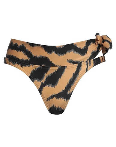 synthetic jersey, brand logo, tiger stripes, fully lined, self-tie closure, stretch, bikini bottoms