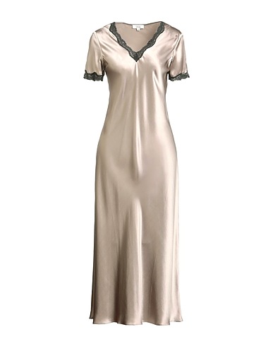 nightshirt, satin, plain colour with appliqués, lace trims, v-neck, short sleeves, hand wash, do not iron, do not tumble dry