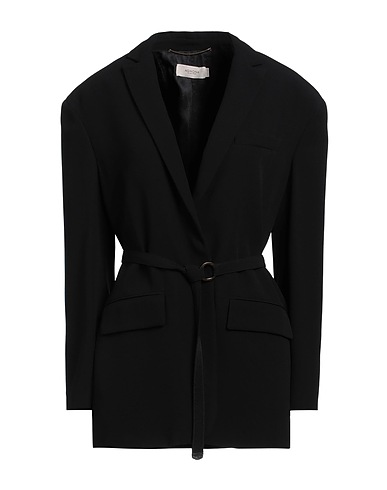 single-breasted blazer, crepe, belt, plain colour, lapel collar, single-breasted , long sleeves, fully lined, snap fastenings, multipockets, contains non-textile parts of animal origin