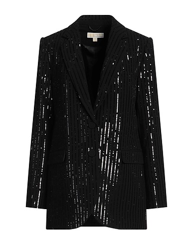 single-breasted blazer, crepe, sequins, plain colour with appliqués, lapel collar, long sleeves, fully lined, button fastenings, flap pockets, dry clean, do not bleach, do not tumble dry, do not iron