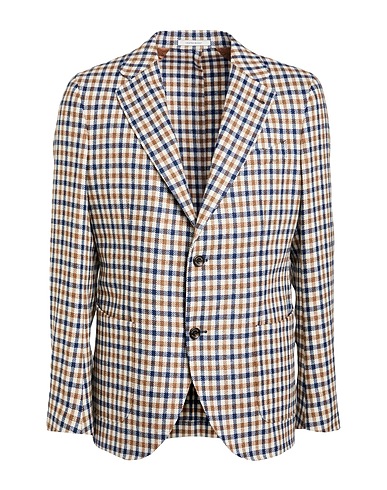 single-breasted blazer, flannel, checked, no appliqués, lapel collar, long sleeves, buttoned cuffs, partially lined, button fastenings, multipockets, dry clean, do not bleach, do not tumble dry
