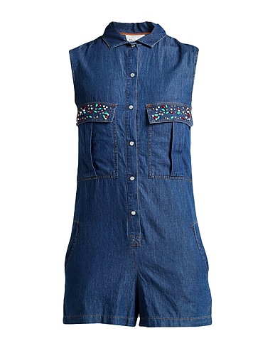 chambray, plain colour with appliqués, embellished, classic collar, short sleeves, snap fastenings, multipockets, machine wash, do not bleach, do not tumble dry