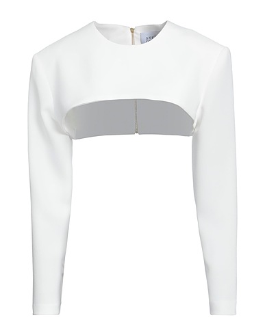 Crop Top, Krepp, einfarbig, ohne Applikationen, Rundhalsausschnitt, lange Ärmel, Reißverschluss